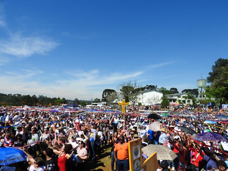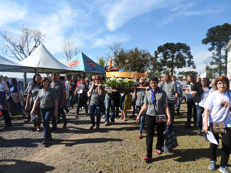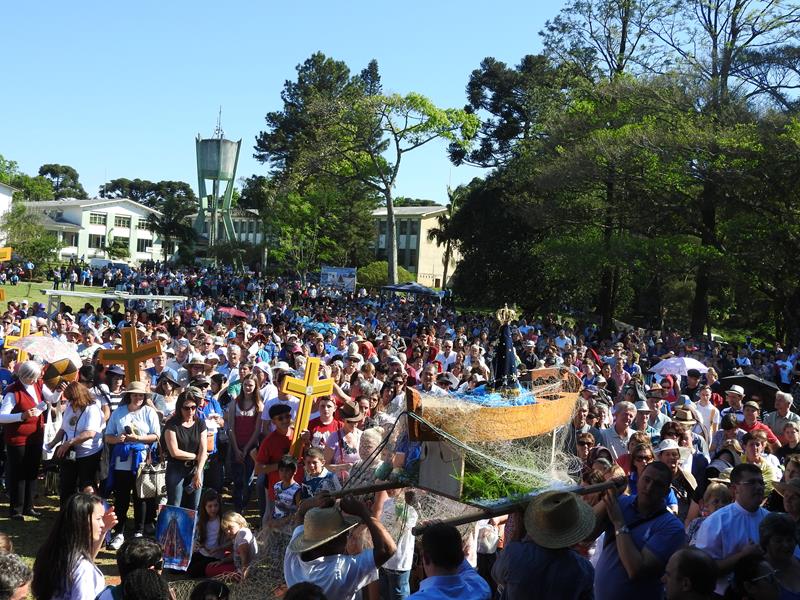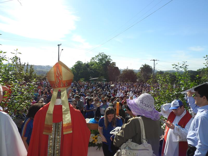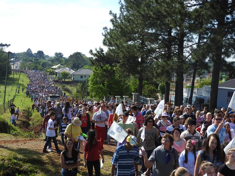 As 09hs iniciou-se a procissão por cerca de 2 km. No trajeto cantos e mensagens sobre diversos temas, principalmente em alusão ao Ano da Misericórdia. Dom Aloísio Dilli participou da caminhada. Também Dom Jaime Spengler, arcebispo de Porto Alegre, esteve presente na Romaria.